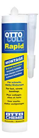 OTTOCOLLRapid наносится точечно, полосками или шпателем по всей поверхности. Удаляйте излишки клея немедленно. Проводите склеивание с помощью OTTOCOLL Rapid в пределах периода времени, необходимого для формирования пленки (приблизительно 4 минуты). Закрепляйте тяжелые детали дополнительно.