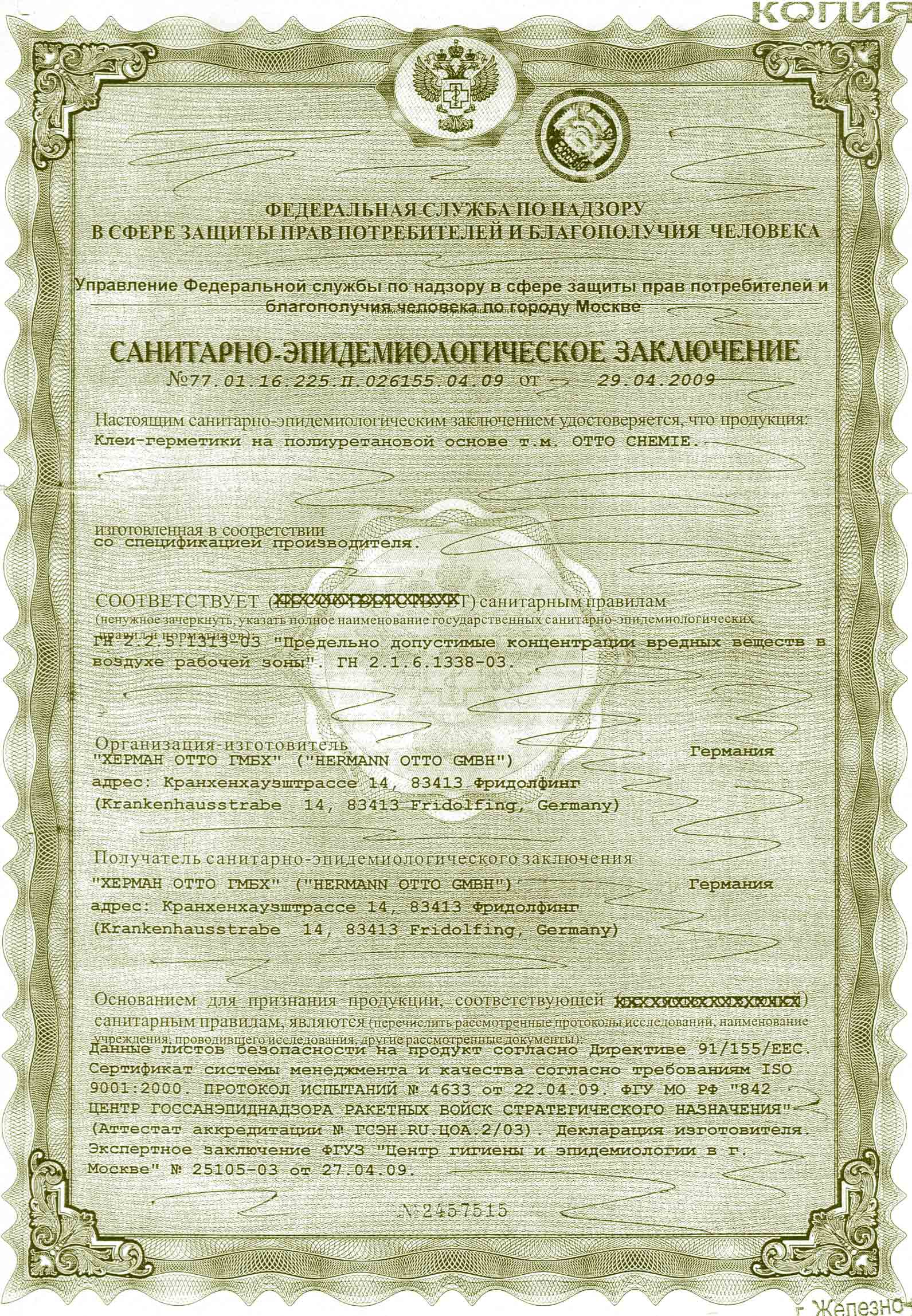 Вся информация в данной публикации, основана на современных технических знаниях и опыте. Однако, поскольку условия и методы применения наших продуктов находятся вне нашего контроля, эта информация не должна использоваться вместо испытаний заказчика для обеспечения того, чтобы продукты компании Otto-Chemie были безопасными, эффективными и оптимальными при конечном использовании.