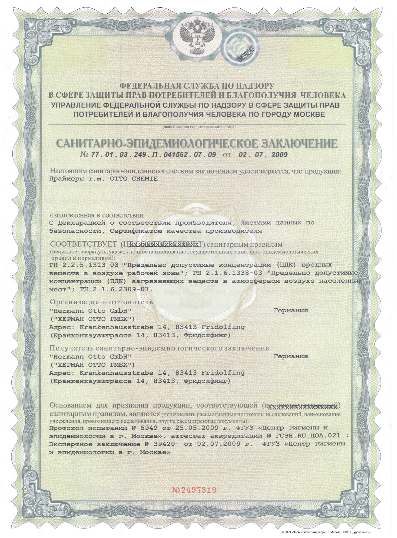 Вся информация в данной публикации, основана на современных технических знаниях и опыте. Однако, поскольку условия и методы применения наших продуктов находятся вне нашего контроля, эта информация не должна использоваться вместо испытаний заказчика для обеспечения того, чтобы продукты компании Otto-Chemie были безопасными, эффективными и оптимальными при конечном использовании.